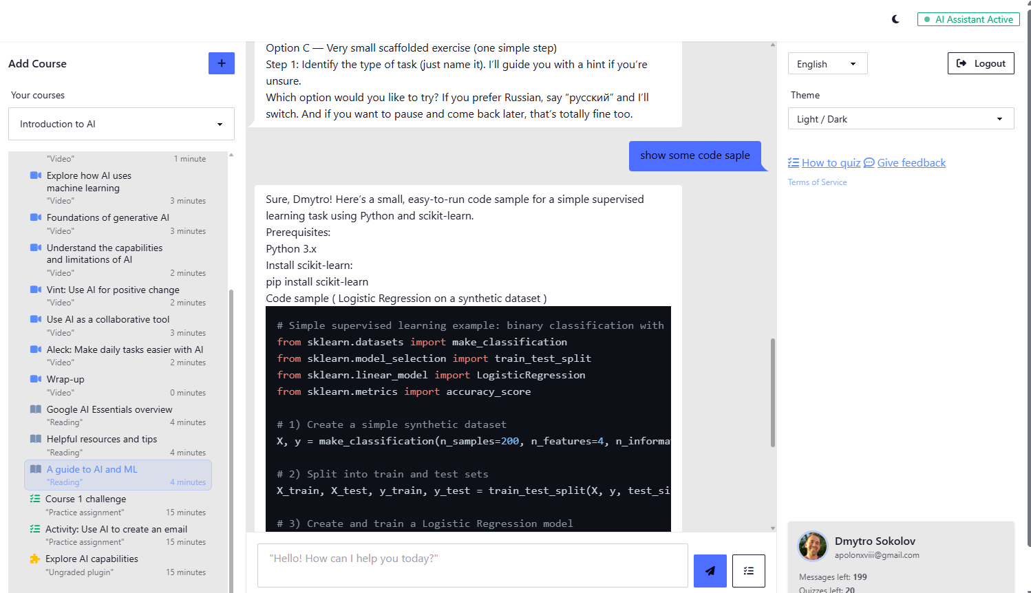 An intelligent assistant that understands your course structure, explains complex topics in simple language, and helps you prepare for exams. Supports Coursera